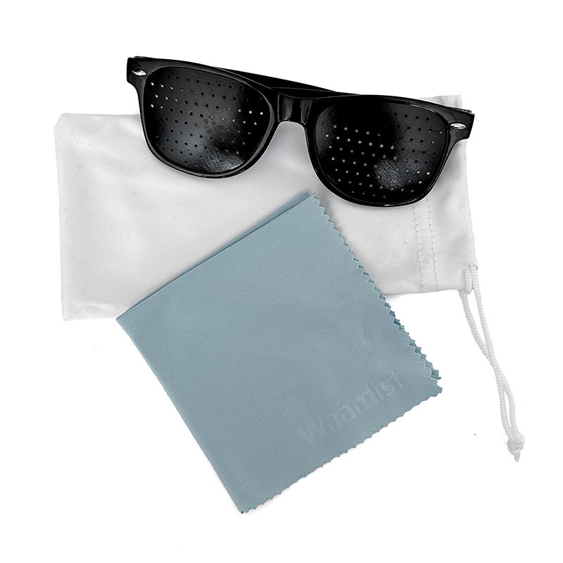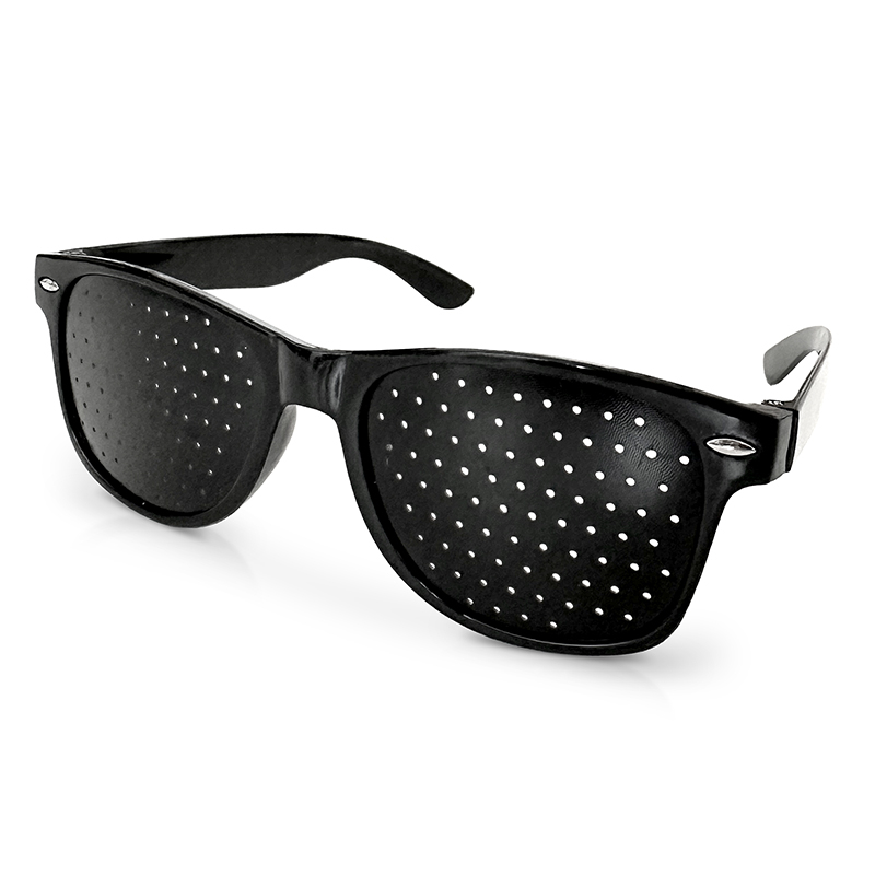 Hälsoglasögon (även kända som stenopeiska glasögon från det grekiska ordet för ”liten öppning”) är inte gjorda av glas, utan av ett ogenomskinligt material som plast. Du använder glasögonen genom att titta i ett av de många små hålen i materialet. Dessa hål har effekten att minska bredden på knippet av alla ljusstrålar som kommer från varje punkt på objektet som betraktas.