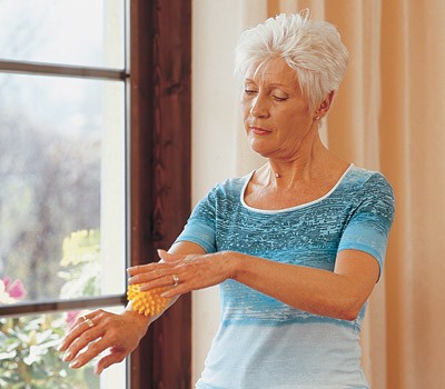 - Krama bollen med händerna och stimulera zonpunkterna i handen