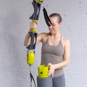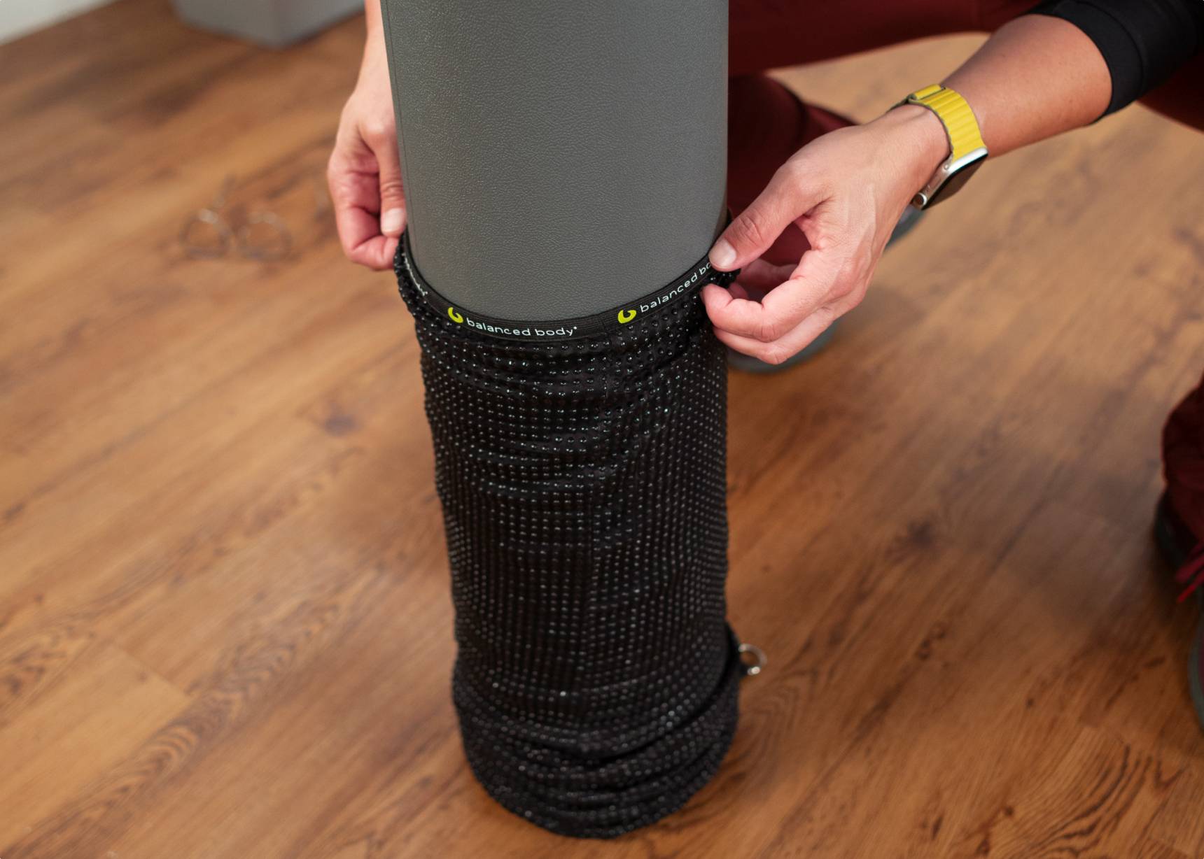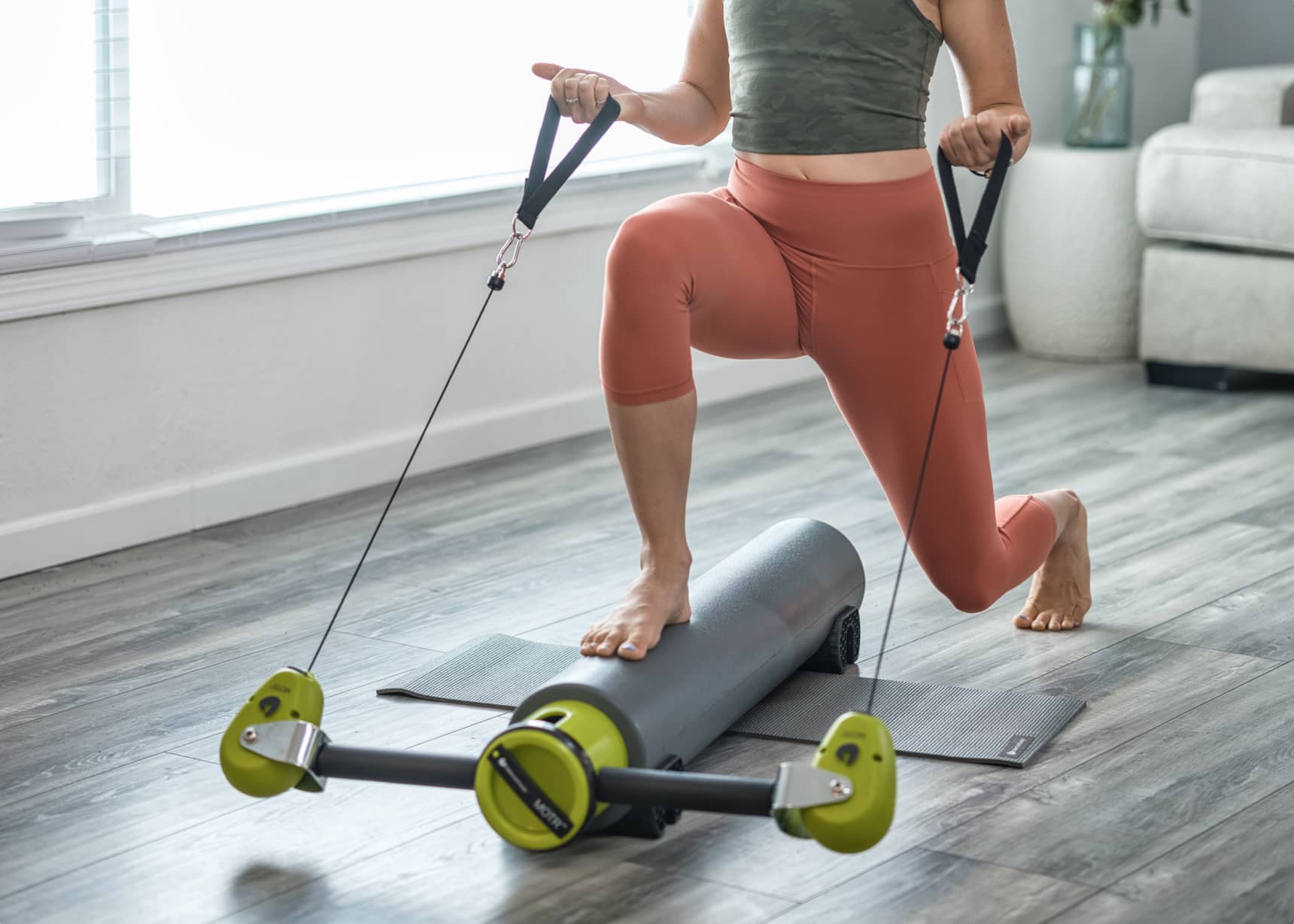 Developed by Pilates instructor and fitness enthusiast Darya Bronston, the MOTR is a portable full body training system. The innovative cylinder base is padded for pre- and post-training rolling, stretching, and fascia release. The resistance arm can be attached to the base for a variety of standing, supine, and kneeling exercises, adding resistance to increase or decrease the level of difficulty.