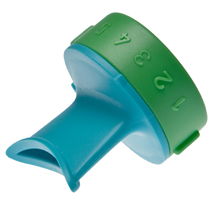 - Ställ in motståndet efter önskemål genom att vrida Relaxator-munstycket för att justera ventilationen. Det finns fem motståndsnivåer: ju mindre öppningen är, desto större motstånd. 5 är det tyngsta motståndet och 1 är det lättaste.