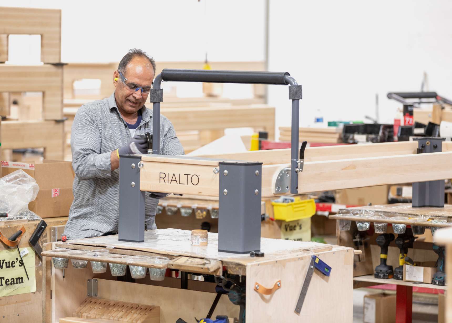 - Handgjord ram i massiv lönn med extruderade aluminiumben – stabil, robust och hållbar