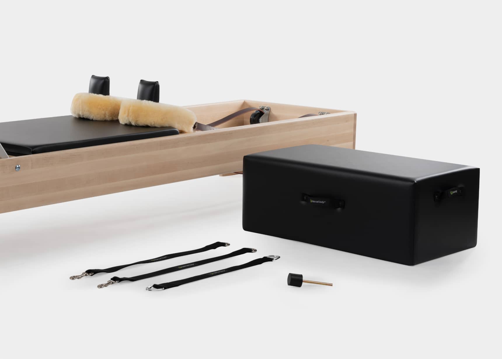 - Premium upholstered <aclass=”link” href=”/products/pilates-sitting-box-standard/”>Standard Sitting Box and Footstrap.