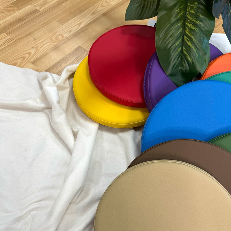 10st runda skumdynor täckta med slitstarkt PVC-tyg i 10 olika färger