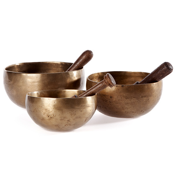 De är slagna istället för gjutna, vilket ger ett vackrare ljud som varar och vibrerar mycket länge. Varje skål har sitt eget ljud, rikt på övertoner.